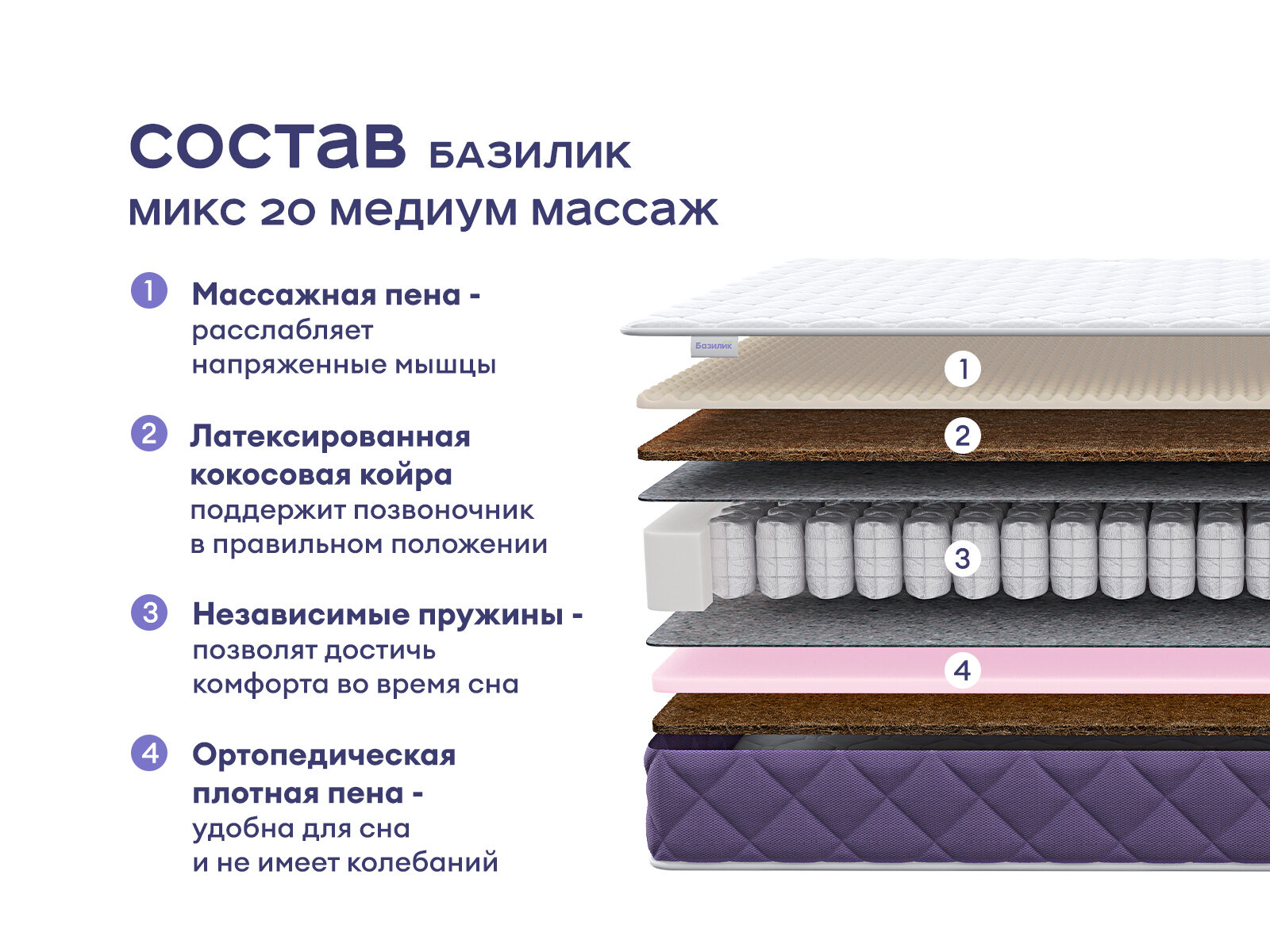 Комплект Левита + Базилик Микс 20 Медиум Массаж — это гармония элегантности и комфорта для вашего отдыха. Стильная кровать украсит любую спальню и матрас, точечно подстраивающийся под тело, дополнен массажными зонами для расслабления мышц — как в спа-салоне. При покупке комплекта вы экономите до 36% от стоимости. Идеально для тех, кто хочет совместить современный дизайн с ортопедическим эффектом, не жертвуя практичностью.