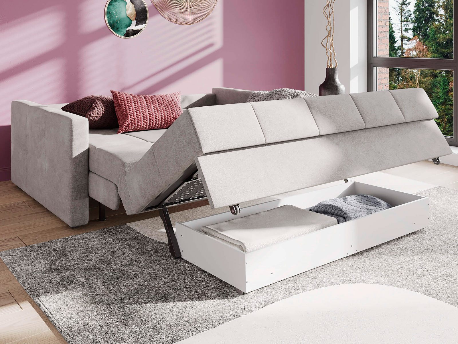 Диван-кровать Rest для сна в современном стиле, с механизмом трансформации аккордеон и коробом для хранения. Металлический каркас с деревянными ламелями обеспечивает ровную поверхность, как на кровати. Матрас анатомический с независимым пружинным блоком. Благодаря чехлу с объемной стежкой в форме квадратов, диван органично впишется в современные интерьеры и интерьеры в стиле минимализм. Лаконичные подлокотники и механизм разложения обеспечивают дивану минимальные габариты в ширину как в сложенном, так и разложенном виде. Диван Rest оборудован вместительным коробом для хранения постельного белья или аксессуаров для сна. Rest имеет 2 положения трансформации - диван с комфортной посадкой и кровать с полноценным анатомическим матрасом.
