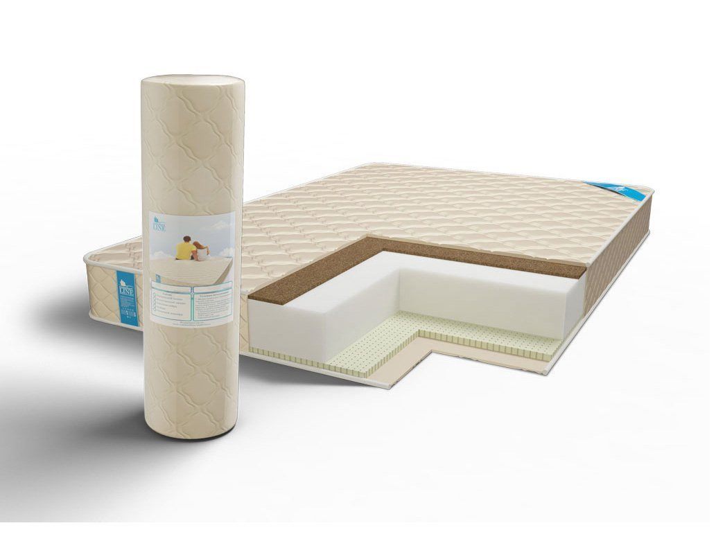 Внутри матрас представлен 14 см блоком искусственного латекса сверху и снизу от которого с одной стороны лежит прослойка кокосовой койры, а с другой – натурального латекса.