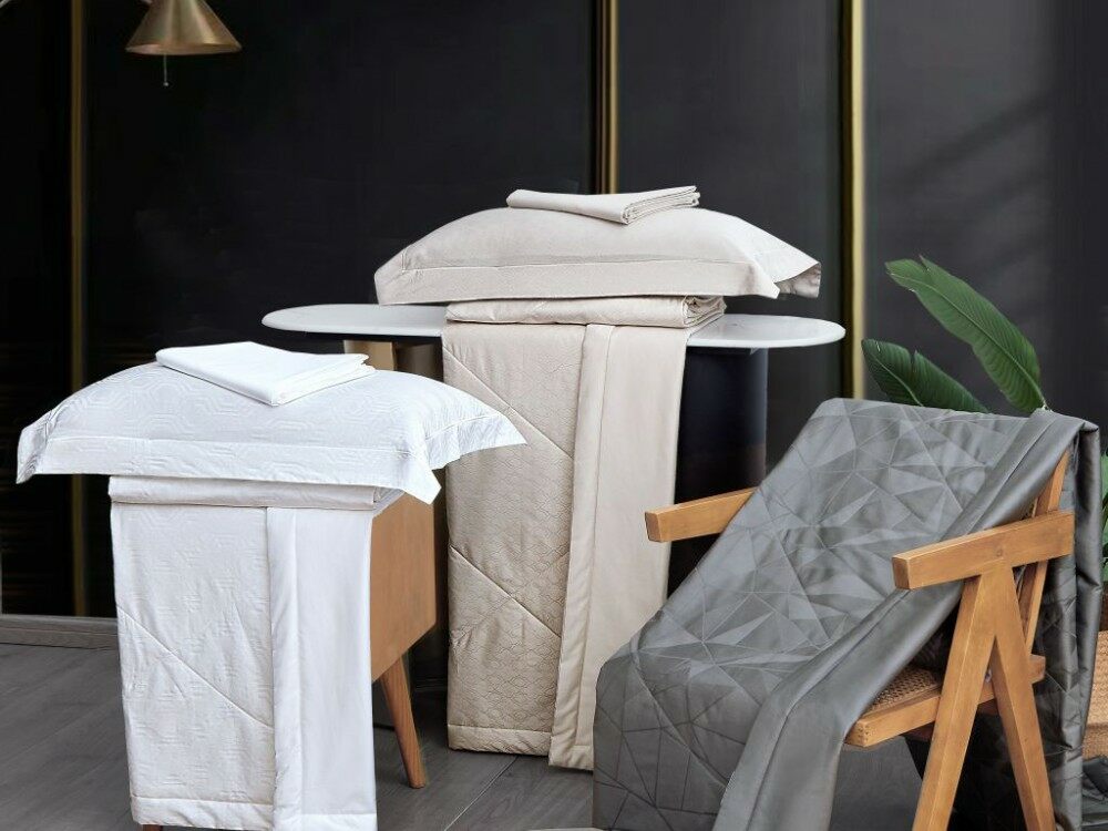 Воздушные и лёгкие одеяла из хлопкового жаккарда с наполнителем из тенсела и искусственного шелка соединяют в себе пластичность и благородный блеск египетского хлопка, мягкость и комфорт тенсела. Отлично впитывают и быстро испаряют влагу, великолепно пропускают воздух - "дышат". Одеяла из хлопкового жаккарда с наполнителем из тенсела и искусственного шелка создают натуральную защиту от бактерий, что подходит для людей с чувствительной кожей.