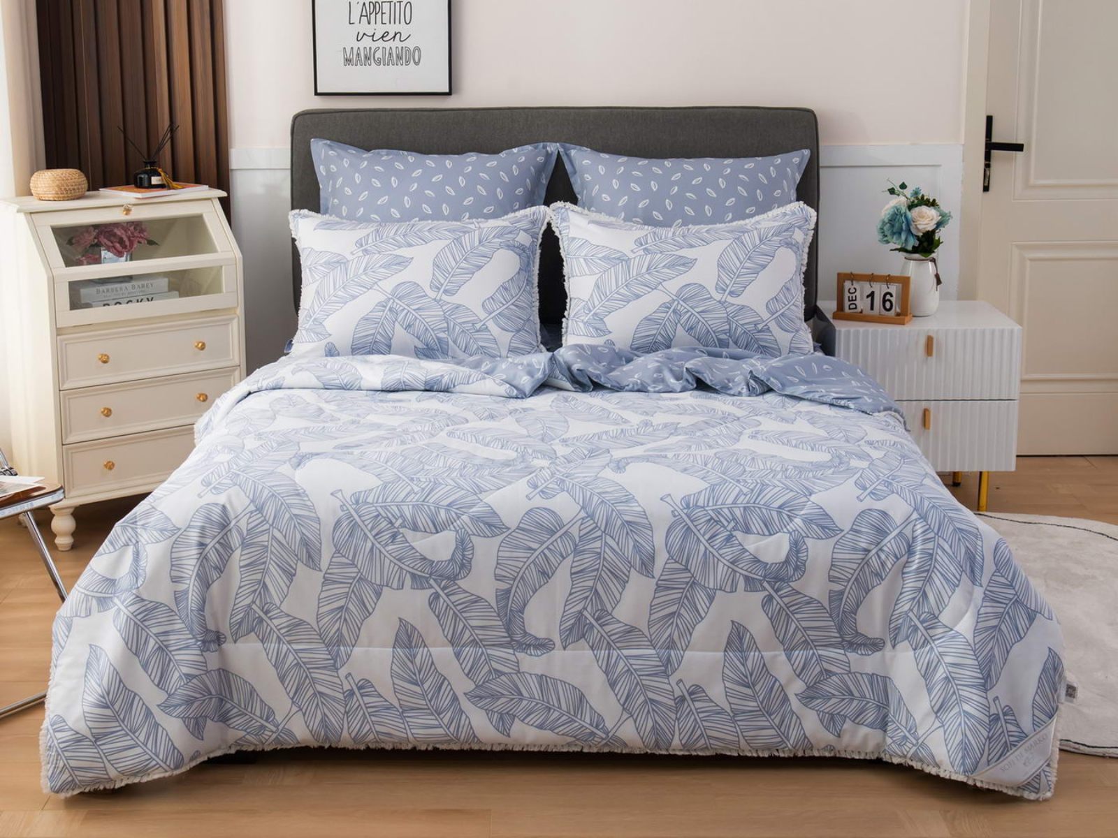 В комплекты комфортеров с одеялом Бернадетт входят наволочки, простыня и легкое всесезонное одеяло. Оцените это современное и очень удобное решение, которое идеально подходит тем, кто не любит возиться с пододеяльниками.