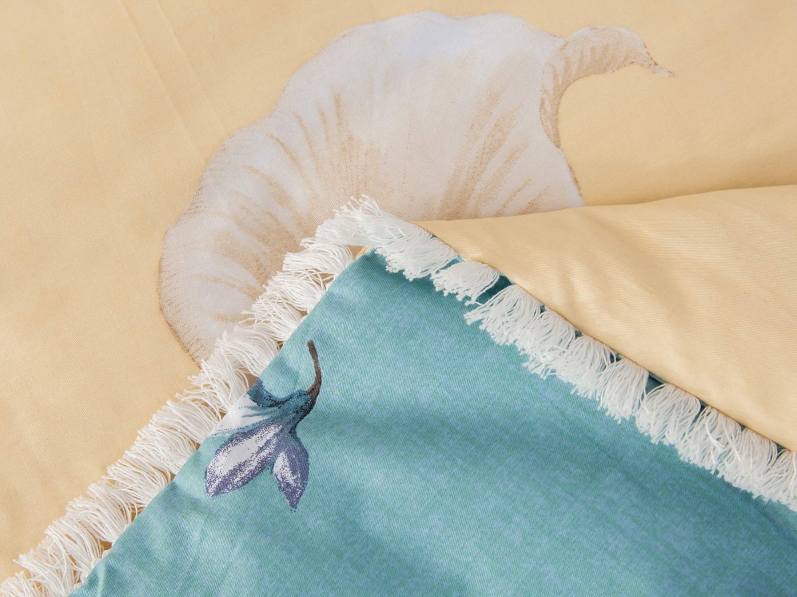 Особенность: кант на одеяле и наволочках декорирован бахромой.