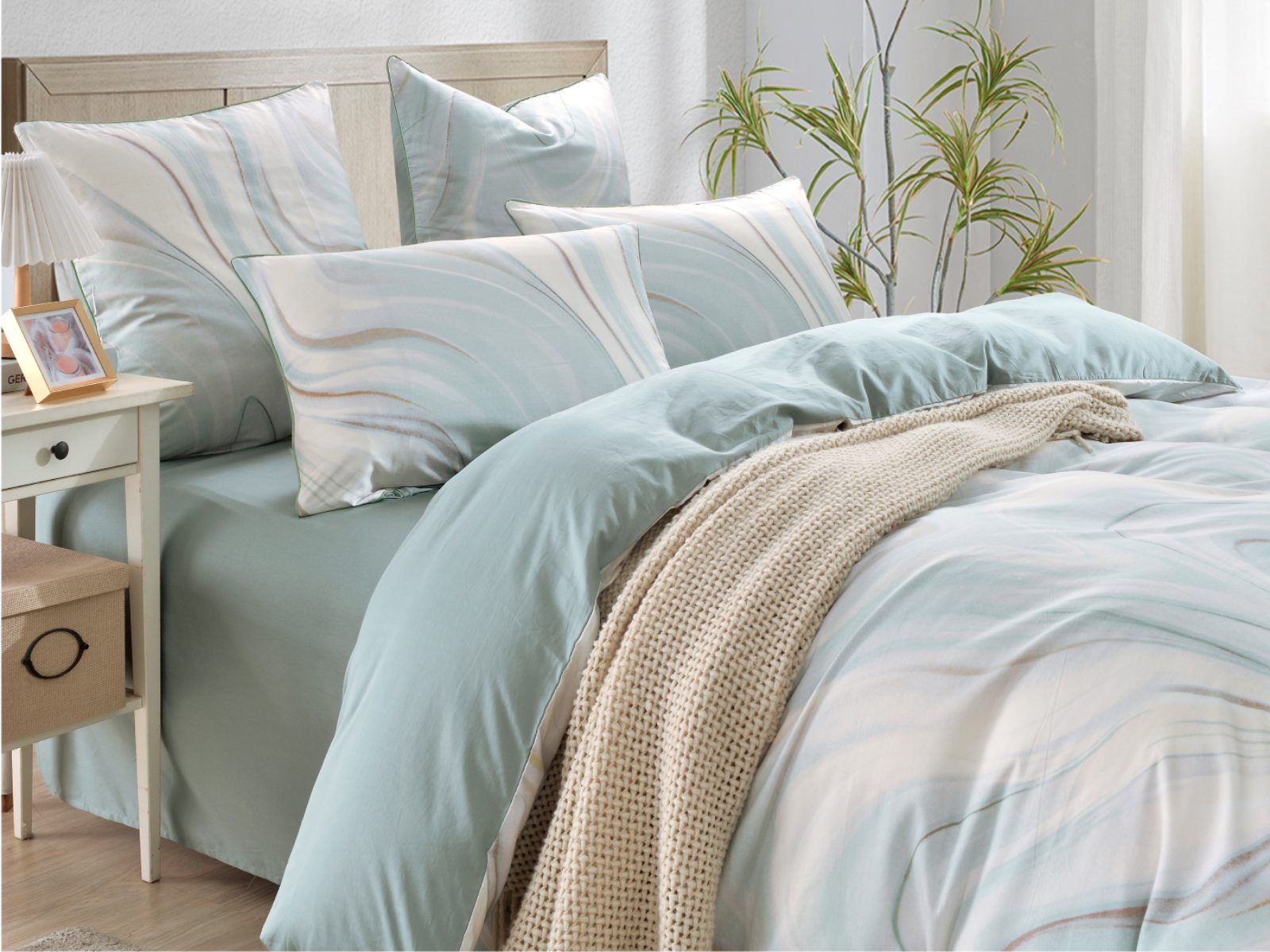 Лорайн (зеленый) — идеальный выбор для тех, кто одинаково ценит комфорт, эстетику и практичность. В составе — Хлопок 100%, поэтому у постельного белья исключительная износостойкость. Даже после многочисленных стирок оно сохранит первозданный цвет, прочность, мягкость и гладкую фактуру. Благодаря отличной воздухопроницаемости материал обеспечивает прохладу летом, а зимой согревает, плюс дарит приятные тактильные ощущения и здоровый сон. Сатин — еще и удивительно красивая ткань, КПБ из нее украсит интерьер спальни, сделает ее по-настоящему уютным местом для полноценного отдыха. К тому же у дизайнеров этот материал всегда в тренде, поэтому с такой покупкой вы точно не прогадаете.