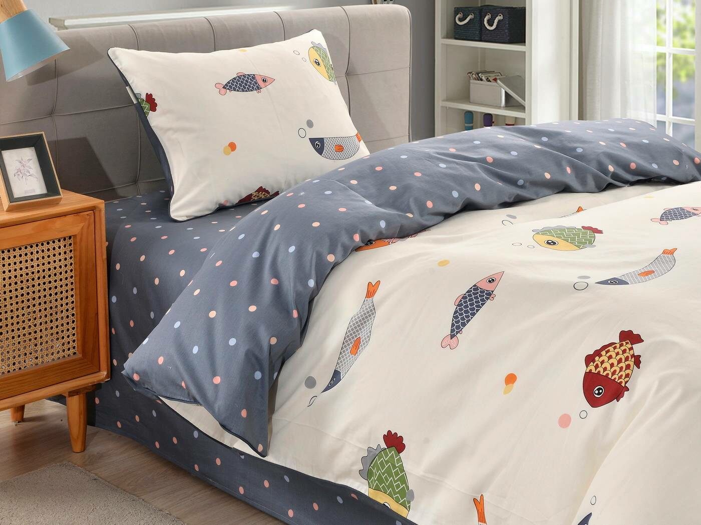 Комплекты выполнены из 100% хлопка, он гарантирует качественный сон, т.к. натуральная ткань хорошо впитывает влагу и позволяет коже дышать. Натуральные материалы не вызывают аллергии. Огромная палитра оттенков и яркие дизайны комплектов понравятся детям и подросткам.