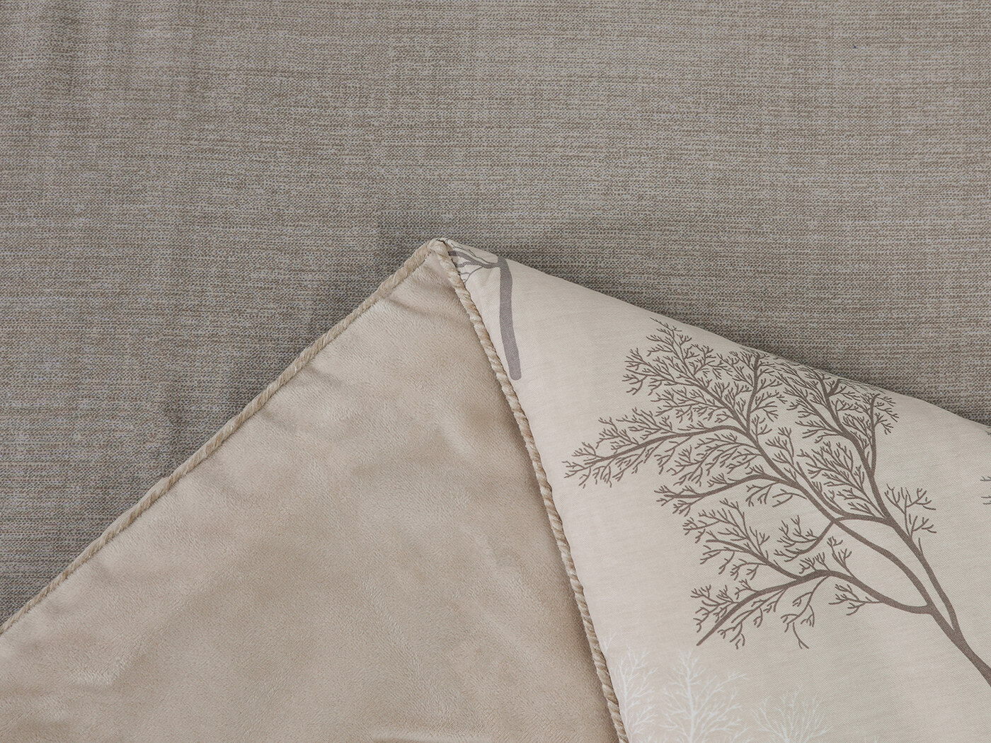 Обратная сторона одеяла – принтованный сатин натуральный хлопковый материал. На ощупь нежная и шелковистая, при этом комфортная и прочная ткань.