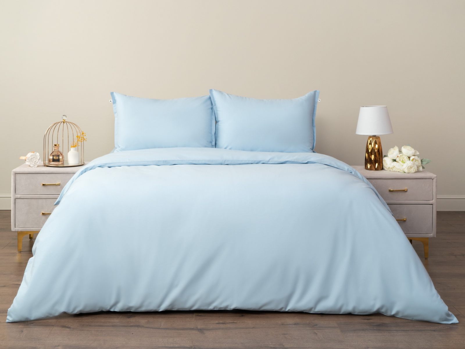 Комплект изготовлен из ранфорса, такая ткань отвечает всем современным стандартам и по уровню комфорта не уступает сатину. Ранфорс долговечен, лёгок и приятен на ощупь. Комплект Сэнди легко стирается в обычной машине в бережном режиме и также легко гладится.
