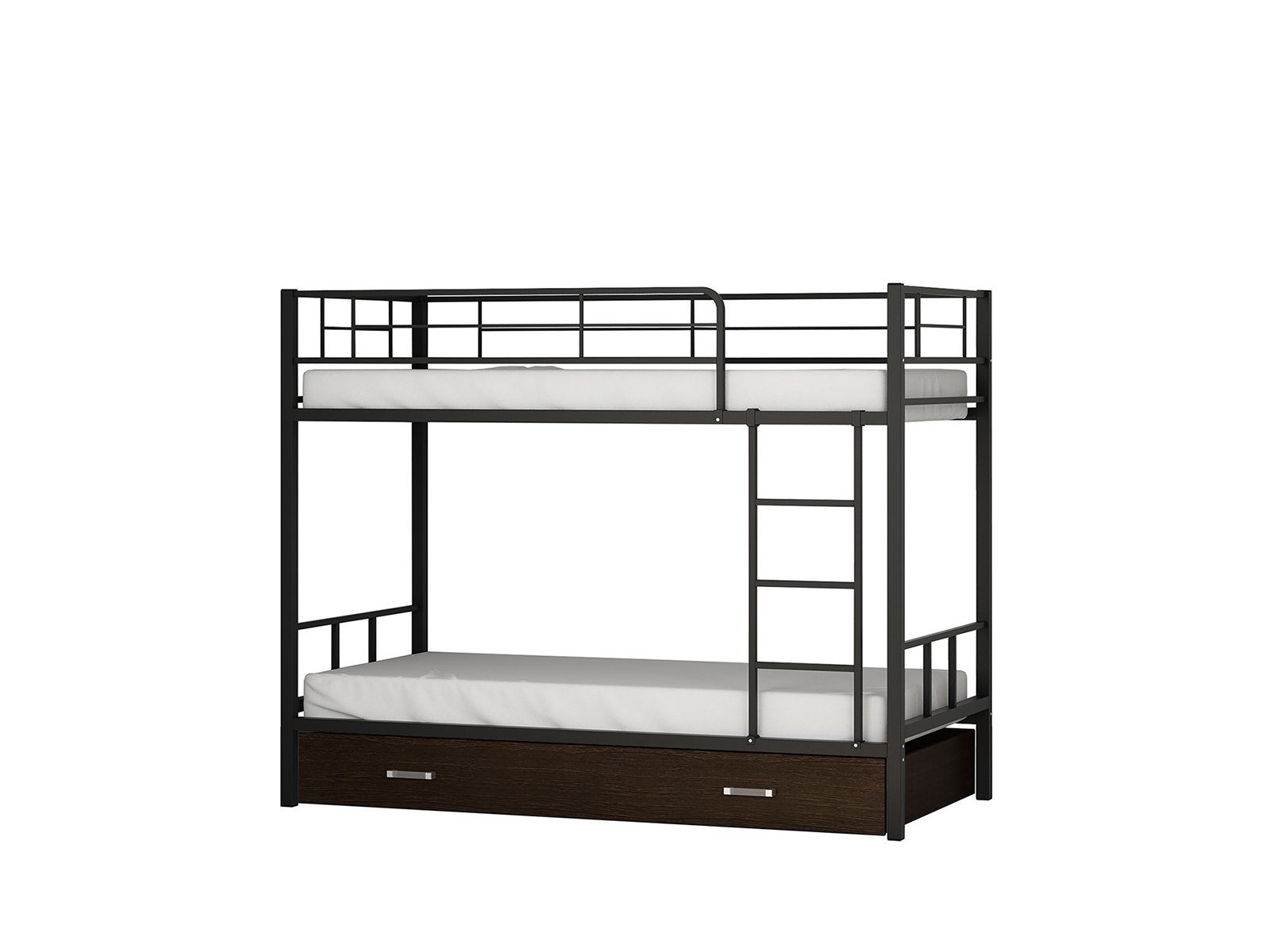 Металлическая двухъярусная кровать с ящиком Севилья-2Я для детей и взрослых, лестница расположена спереди способна выдерживать нагрузку до 180 кг (на одно спальное место), что делает ее подходящей как для детей, так и для взрослых. В отличие от кроватей из ЛДСП выглядит менее громоздкой. В комплект входит прочная лестница, которую по Вашему желанию можно установить справа или слева.