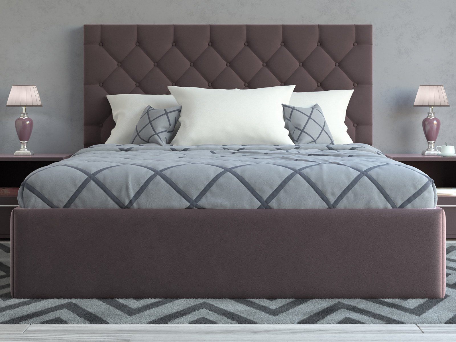 Мягкая кровать с обивкой из велюра.