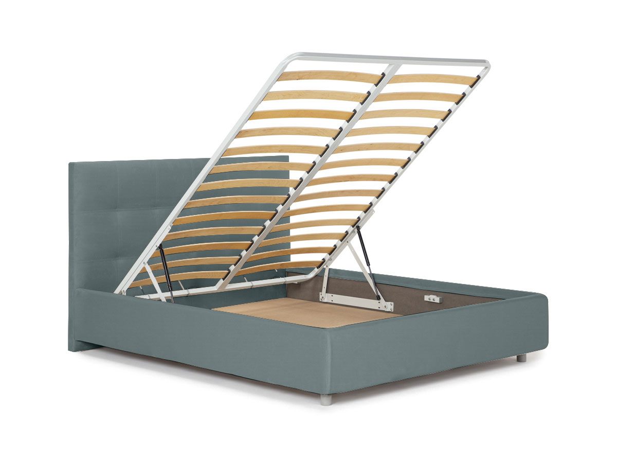 Кровать оснащена основанием с ламелями и подъемным механизмом. Рекомендуемая высота матраса до 27 см, вес матраса до 50 кг.