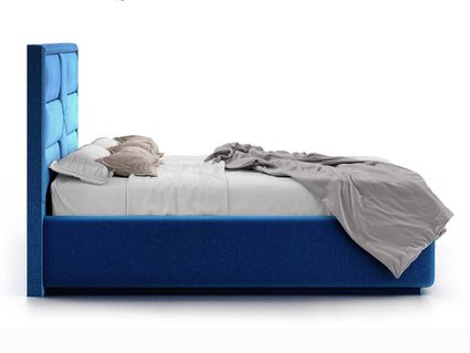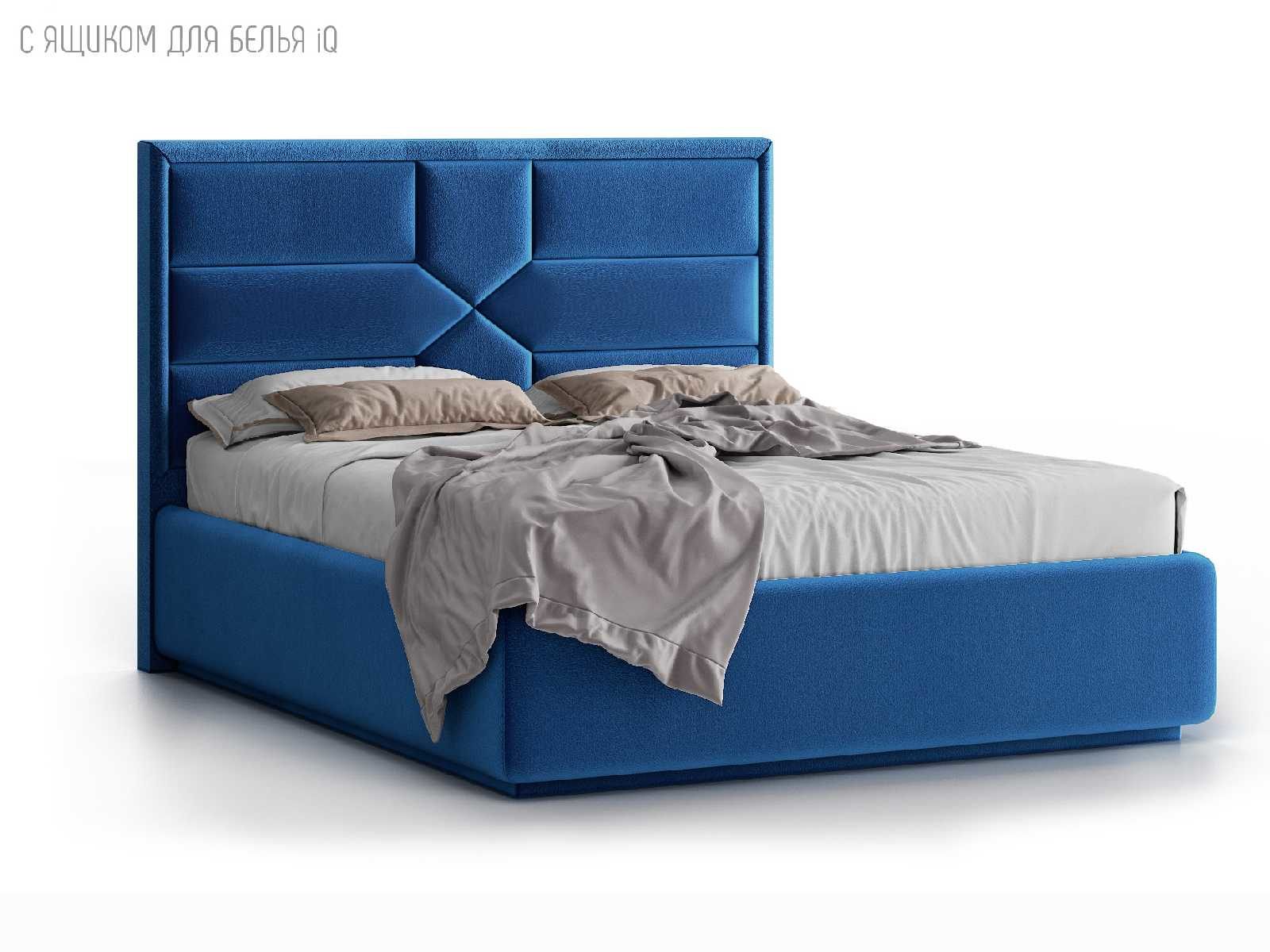 Кровать укомплектована IQ с подъемным механизмом и ящиком для белья без дна (дополнительная платная опция - дно к ящику IQ из HDF (ХДФ). Каркас кровати на цоколе, декоративный чехол на цоколе съёмный. Глубина ящика для белья - 30 см, без ограничения нагрузки на ящик.
