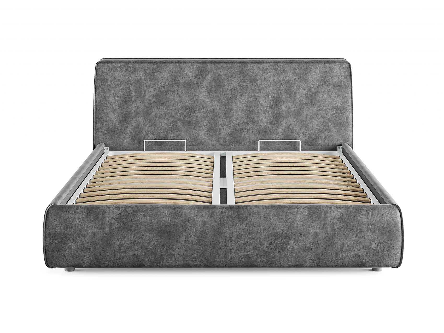Кровать комплектуется металлическим основанием (без опор), которое имеет 13 рядов встроенных березовых ламелий на каждое спальное место, обеспечивая равномерное распределение нагрузки.