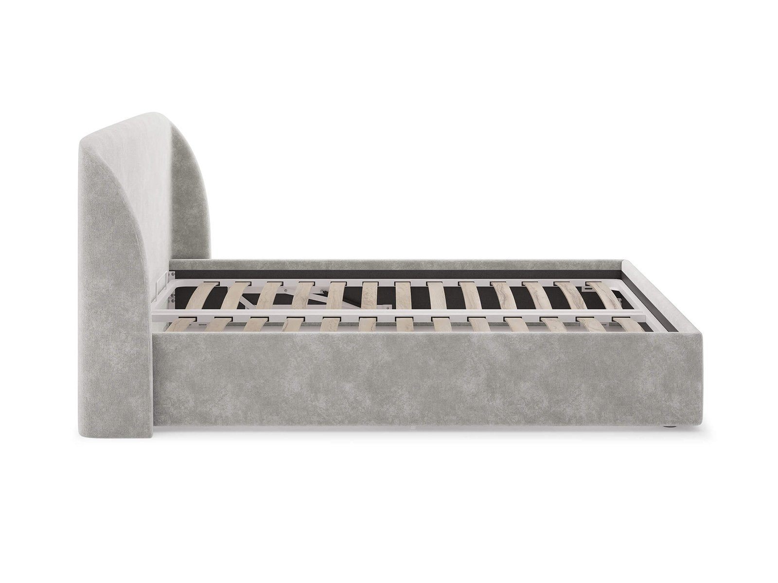 Кровать комплектуется металлическим основанием и подъемным механизмом со вместительным бельевым ящиком. Дно бельевого ящика легко сдвигается для обеспечения уборки под кроватью.