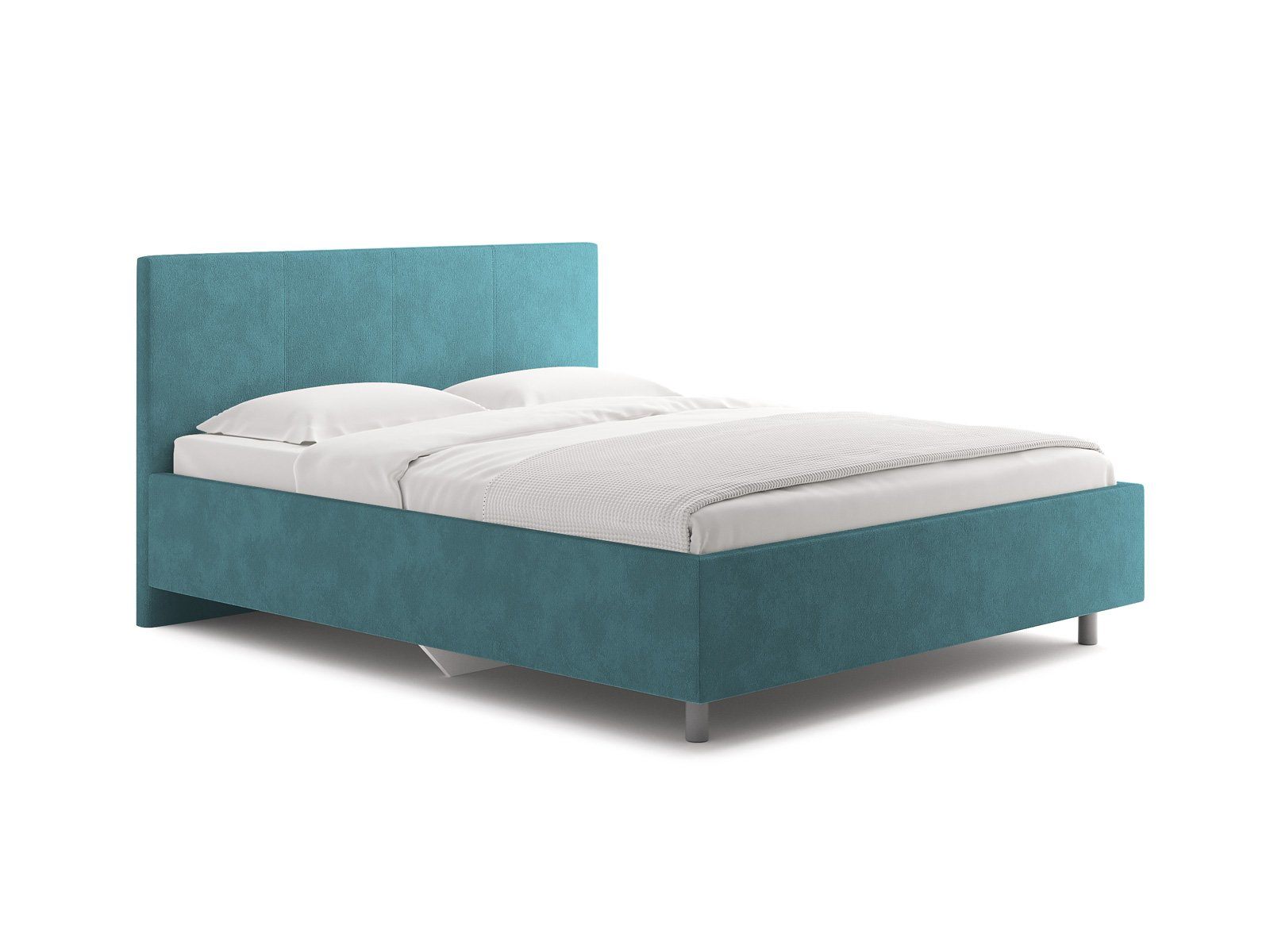 Элегантная кровать с изголовьем украшенным декоративной вертикальной строчкой. Модель изготовлена из ДСП.