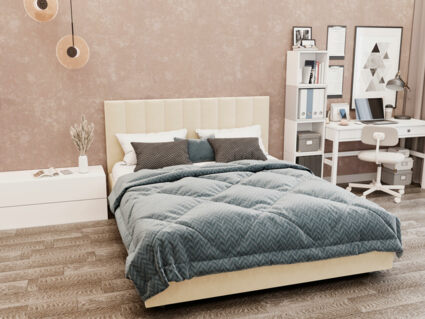 Кровать Лероса Сапфир мгновенно притягивает взгляды. Её изголовье украшает вертикальная параллельная стёжка. Стильная модель отличается продуманным дизайном и практично впишется в любой современный интерьер. Нежная велюровая обивка подарит самые мягкие и приятные соприкосновения. Модель оснащена подъёмным механизмом, что позволяет удобно хранить постельные принадлежности и любые другие вещи под основанием.