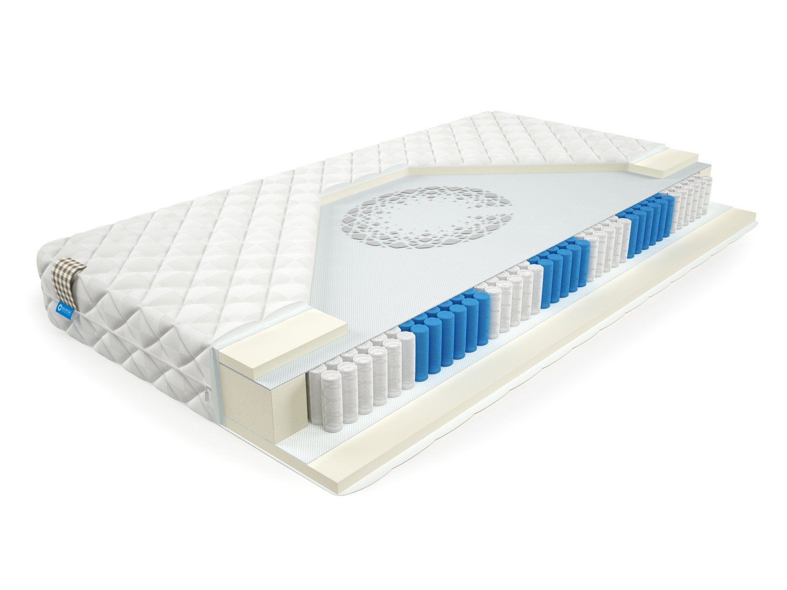 Матрас BioCrystal Effect - недорогой матрас низкой степени жесткости с 1000 пружинами. Матрас c ортопедическим эффектом на основе семи-зонного пружинного долговечного блока независимых пружин SIlverSpringPocket 7 zone. Данный блок насчитывает 1000 металлических пружин на одно спальное место, это оптимальное количество пружин для бюджетного матраса. 7 зональный пружинный блок SSP 1000 значительно прочнее обычного блока независимых пружин, и имеет большее количество витков, что, в свою очередь, лучше сказывается на упругости матраса и качестве сна. Матрас насчитывает семь зон жесткости и правильно повторяет изгибы позвоночника во время сна или отдыха. С каждой стороны матраса расположены по 3 сантиметра пенополиуретана.