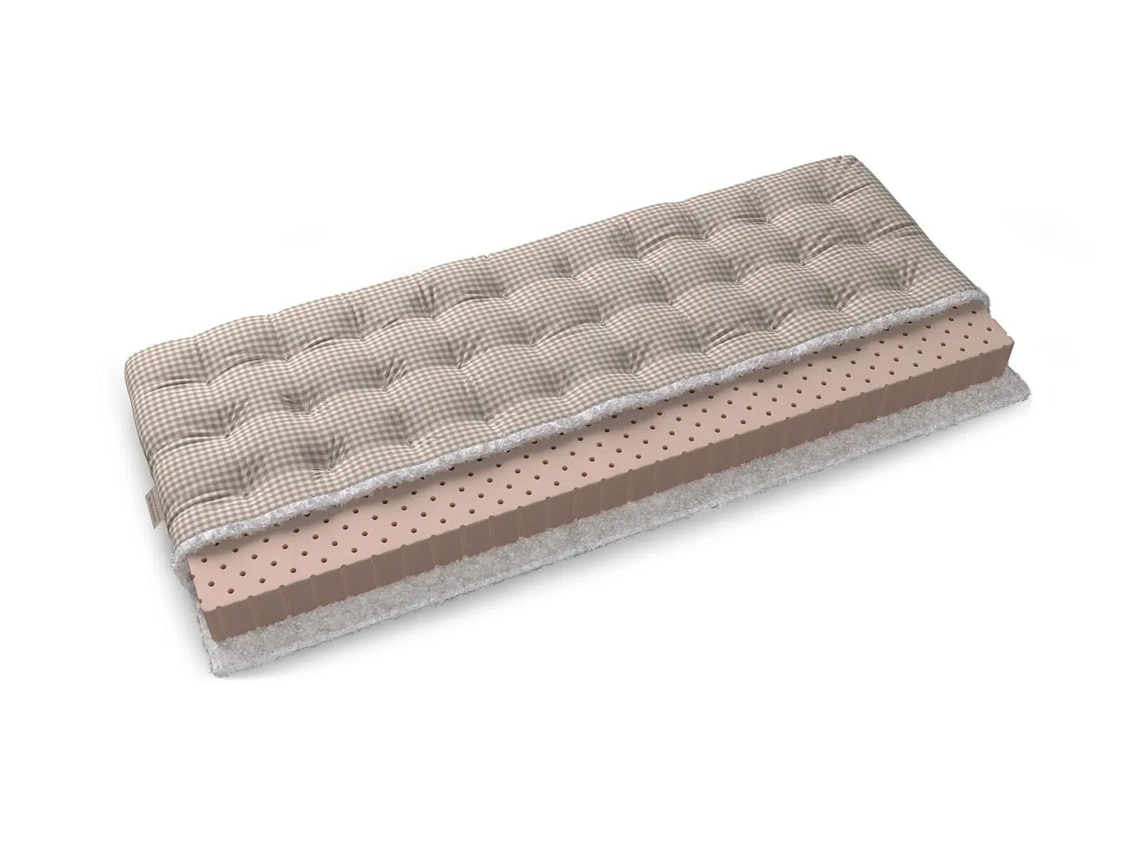 Самый популярный настил. Рулонный латекс отличный и долговечный, хорошо распределяет нагрузку, имеет ортопедический эффект. За счёт упругости латекса давление на сосуды и мышцы во время сна оказывается минимальным. Латекс – уникальный материал с точки зрения индустрии сна. Он прекрасно используется в качестве самостоятельной основы.