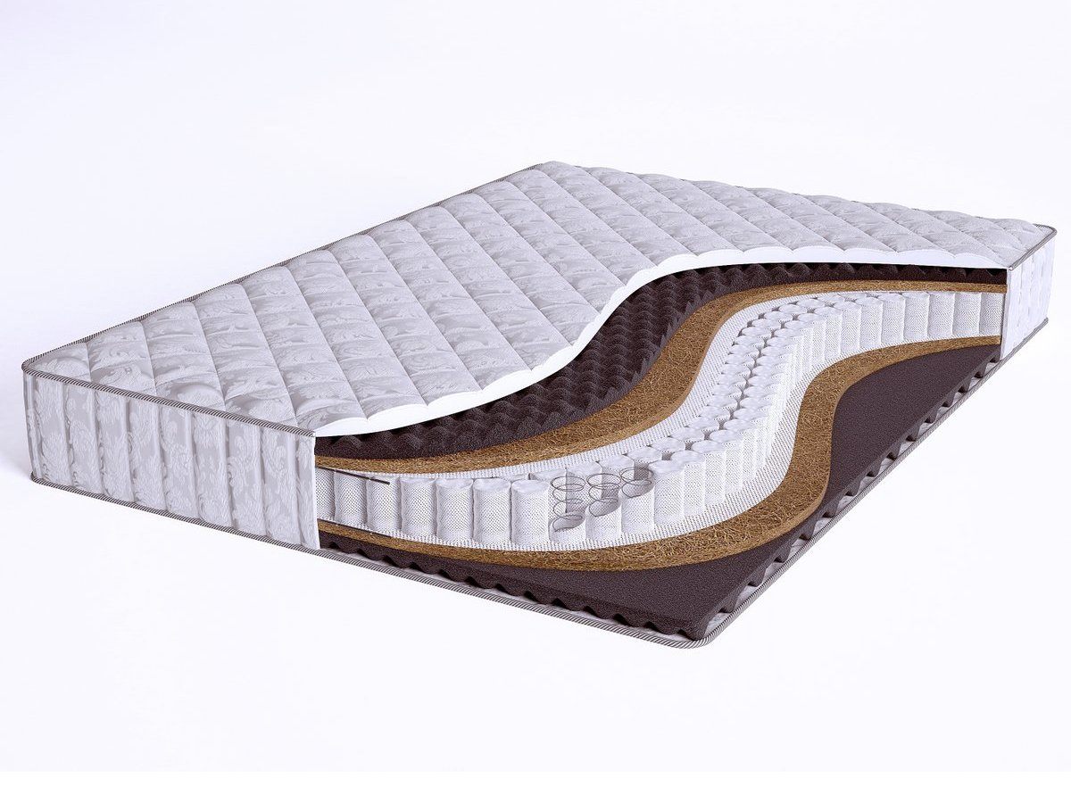 Основным наполнителем матраса является рельефный материал – airfoam massage. Он обладает расслабляющим и микромассажным эффектом, благодаря которому способствует улучшению микроцеркуляции крови в организме во время отдыха. Так же для улучшения ортопедического эффекта с двух сторон матраса положен слой латексированной кокосовой койры (2 см).