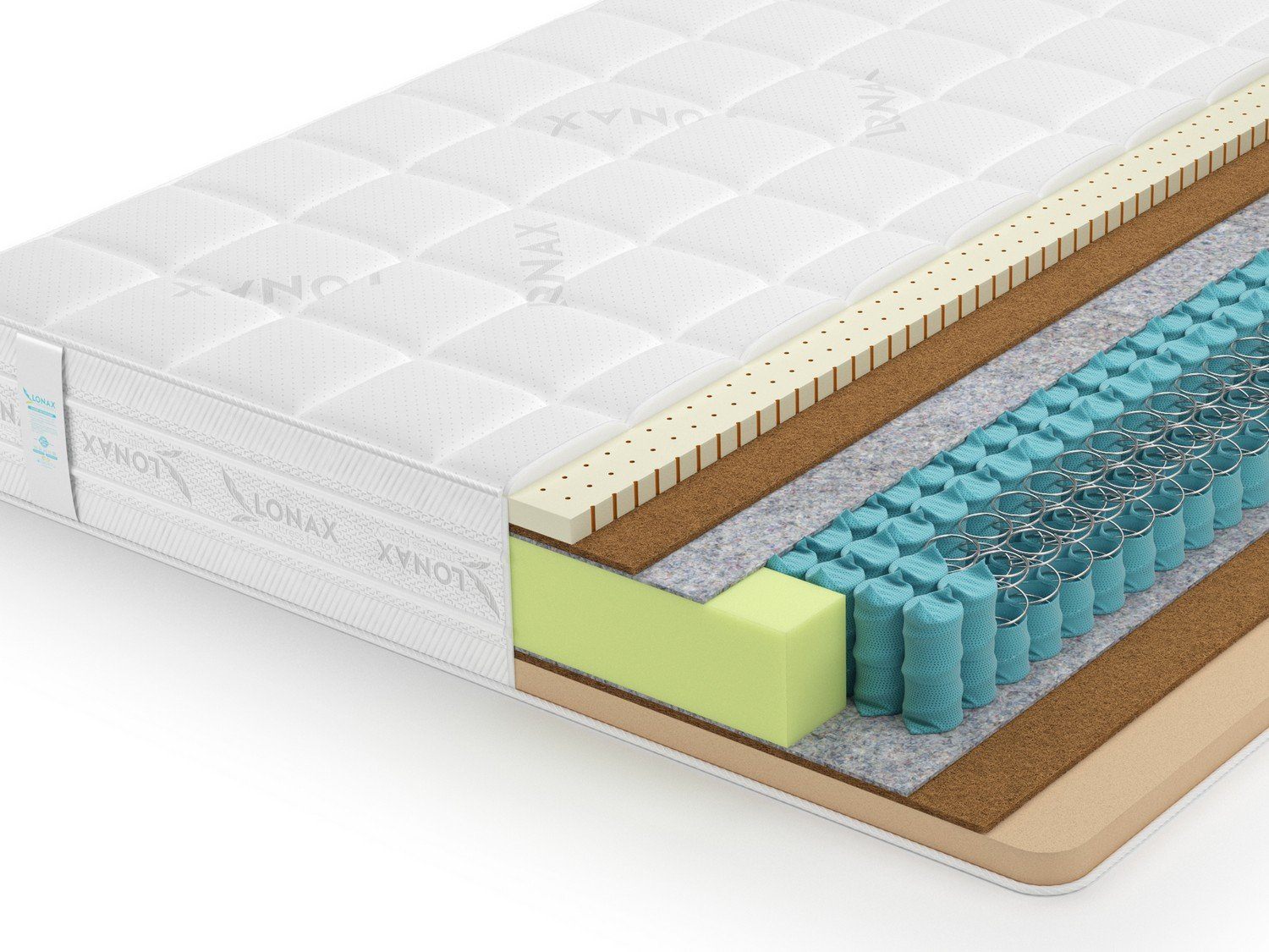 Латекс – это пышная и очень эластичная пена с эффектом адаптивности. Кокос – это жёсткий слой, отвечающий за равномерную поддержку всей фигуры.