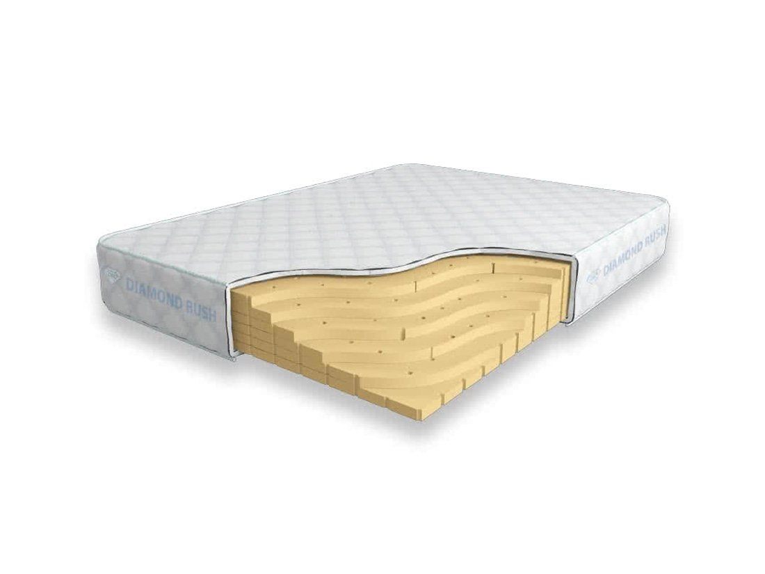 Матрас Diamond Rush Solid Latex 18 DR является беспружинным, т.е. не имеет в своей основе пружинного блока. В его состав входят слои листового натурального латекса с перфорацией. Это один из самых мягких материалов. Матрас, выполненный целиком из натурального латекса, обладает отличным анатомическим эффектом.