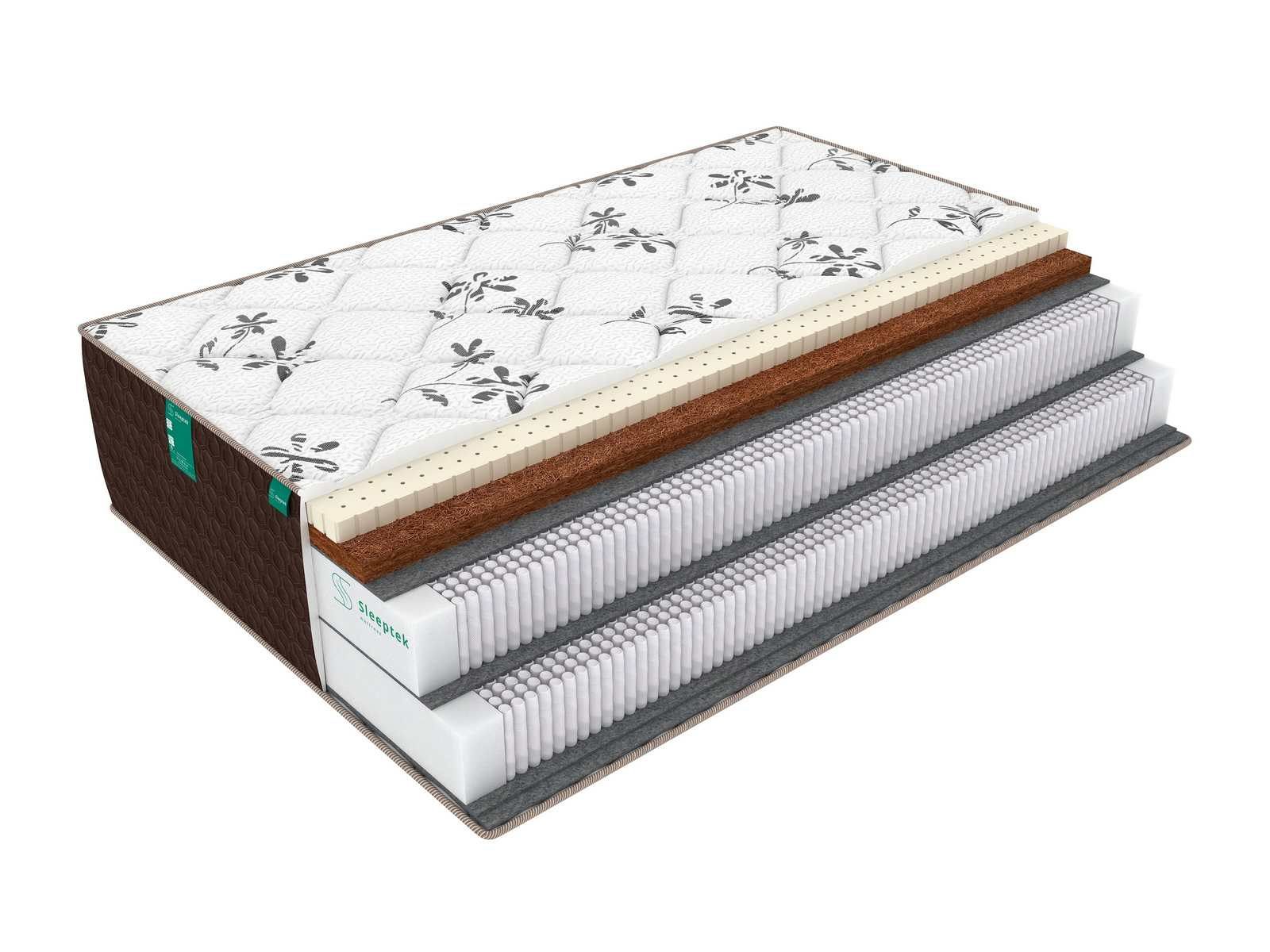В основе данного матраса лежат два блок независимых пружин S2000 с повышенной концентрацией пружин на квадратный метр, при нагрузке в работу подключаются 4000 пружин на спальное место! Такой блок обеспечивает максимальную пользу для позвоночника и всей спины, поскольку умеет точечно подстраиваться под вес и форму тела и повторять все изгибы. Независимая работа пружин позволяет сохранять позвоночник в анатомически правильном положении во время сна, что позитивно влияет на осанку. При этом опорно-двигательный аппарат поддерживается в анатомически правильном положении, что обеспечивает здоровый сон.Блок с обеих сторон окружен прослойками термовойлока. Войлок защищает наполнители от контакта с пружинами и не позволяет металлу пружин повреждать их. Данная модель рассчитана на очень высокие нагрузки – вплоть до 200 кг. Она отличается хорошей устойчивостью и надолго сохраняет свои качества, даже при активной эксплуатации.