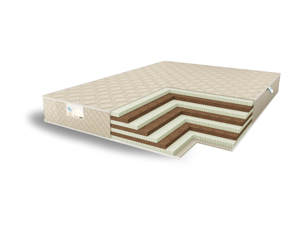 Внутри матраса чередуются слои натурального латекса и койры кокоса. Четыре плиты латекса перемежаются с кокосом так, что у поверхностей остаётся мягкий латекс. Толщина каждого слоя составляет 3 см. Таким образом спальная принадлежность приобрела общую высоту, равную 21 см.