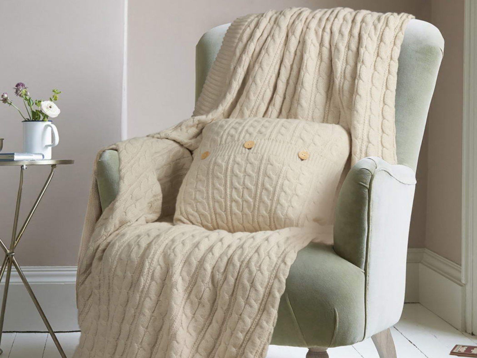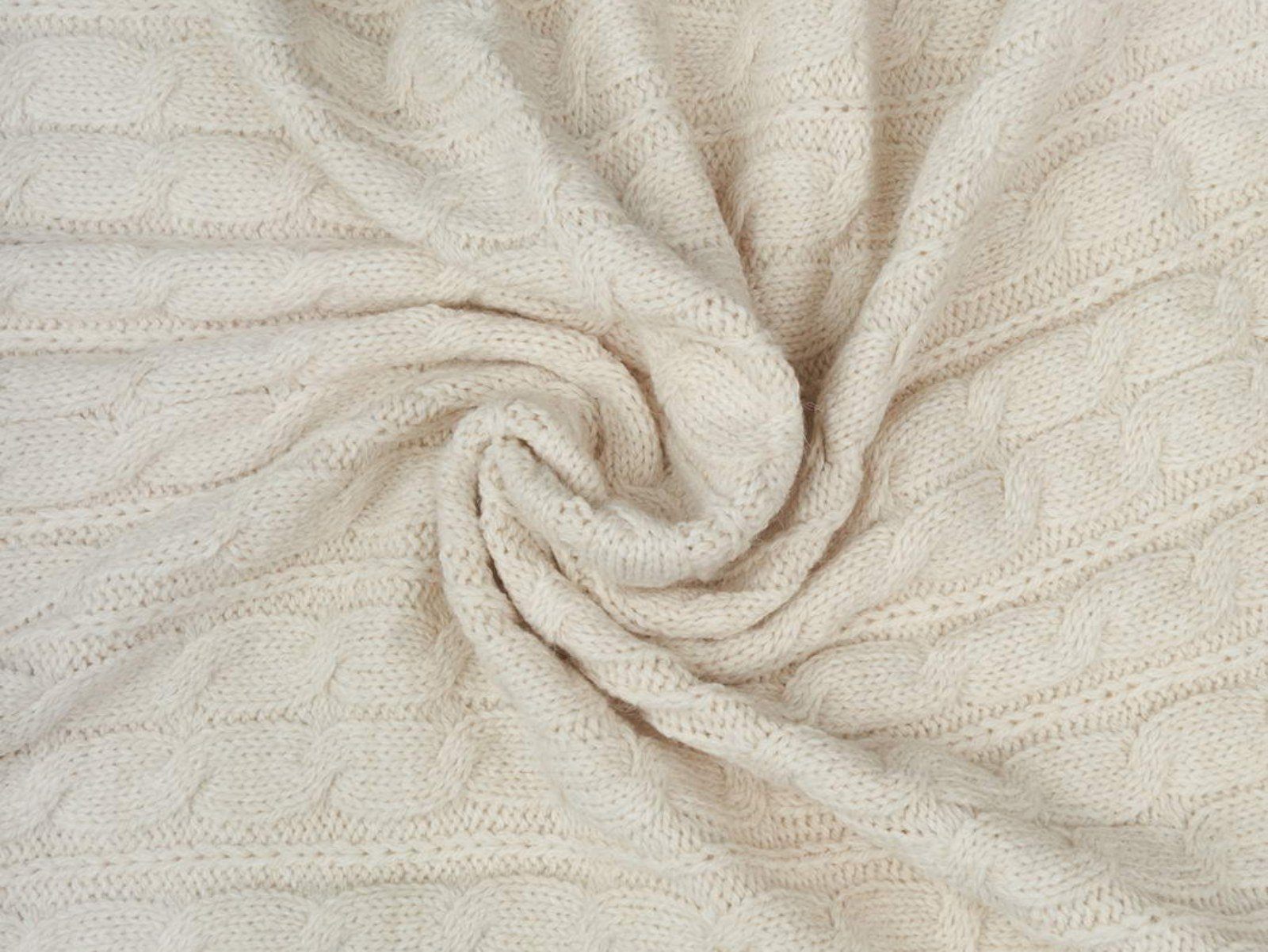 Хлопковая нить позволяет держать форму шерсти и плед не растягивается.