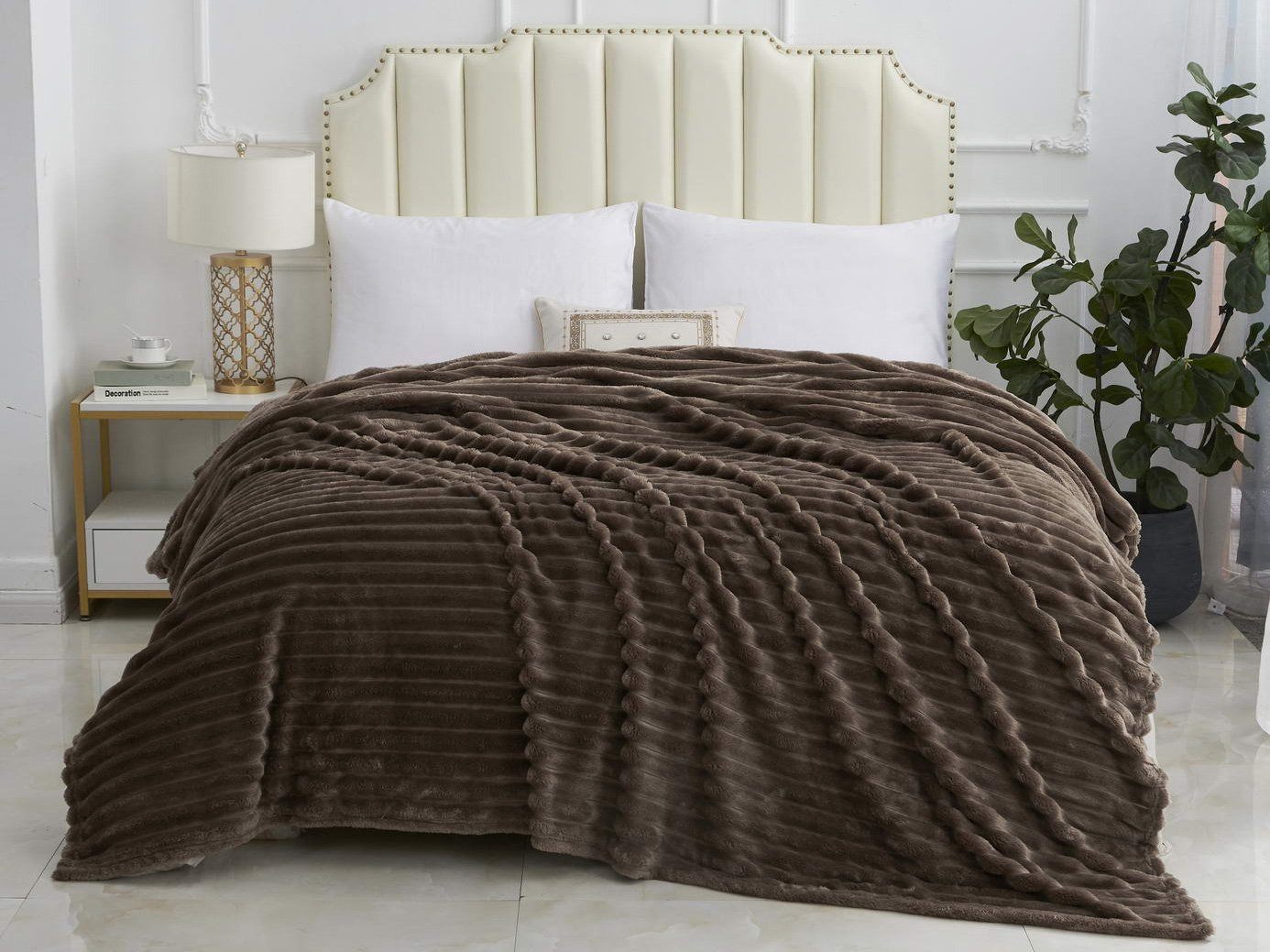 Плед Орнелла представлен в четырех универсальных цветах: кофе, крем, мокко, серый. Подобрав нужный оттенок, вы без труда сможете создать неповторимый интерьер.