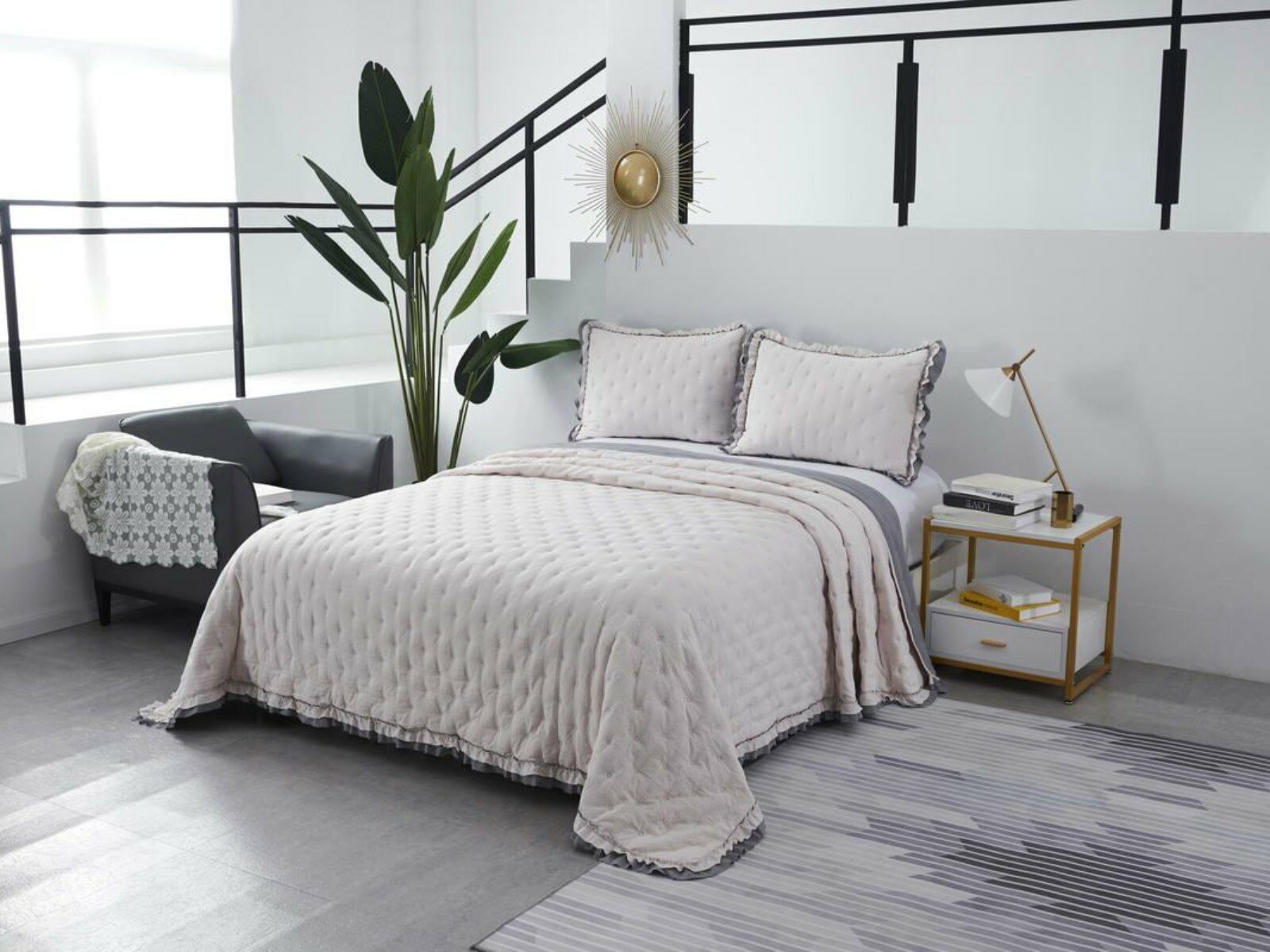 Двусторонние стеганные покрывала Элизабет выполнены из вискозы и хлопка, они легкие и прочные. В комплекте с покрывалом идут две наволочки, вы можете использовать покрывало по назначению, либо в качестве постельного белья. В любом случае, вы будете в восторге от этого комплекта!