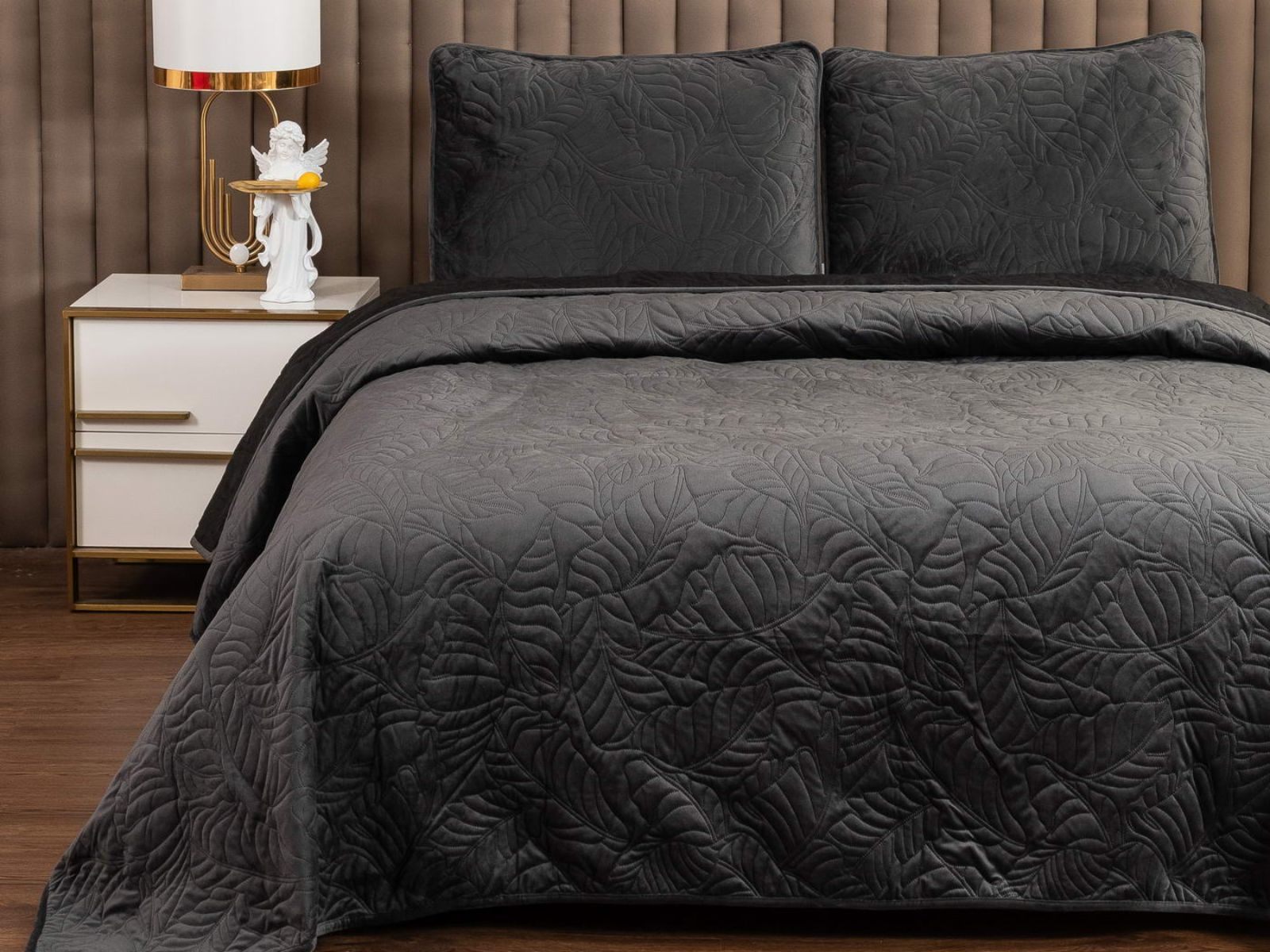 Уютные, мягкие велюровые покрывала Мелисса будут желанны в любом доме. Коллекция покрывал Мелисса выполнена в классических тонах, что делает изделия подходящими для большинства интерьеров, а изящный рисунок в виде листьев подчеркивает индивидуальность.