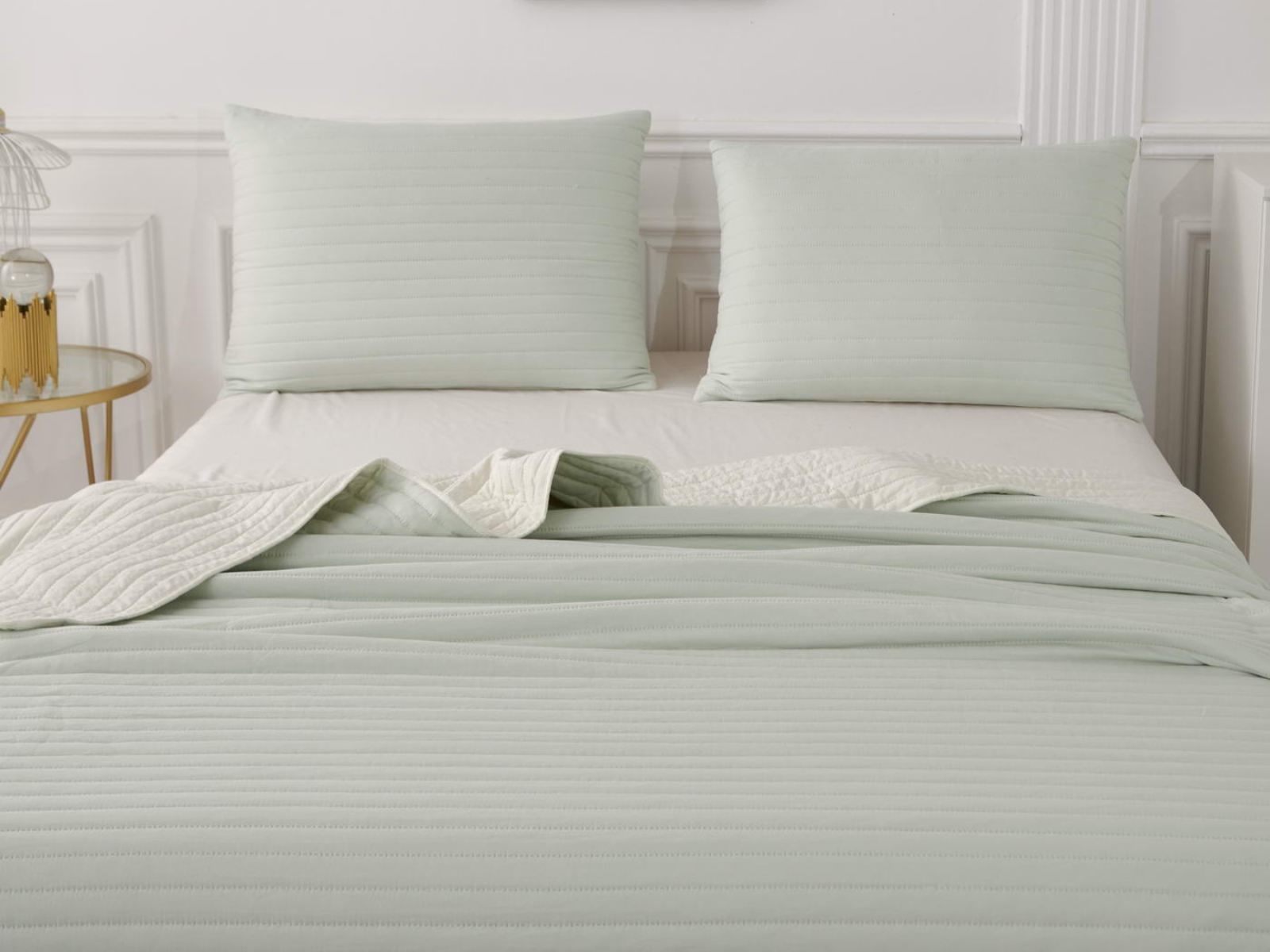 Двусторонние стеганные покрывала Самуэль выполнены из вискозы и хлопка, они легкие и прочные. В комплект входят покрывало и одна либо две наволочки (50х70 см) из аналогичного материала в зависимости от размера, вы можете использовать покрывало по назначению, либо в качестве постельного белья. В любом случае, вы будете в восторге от этого комплекта!