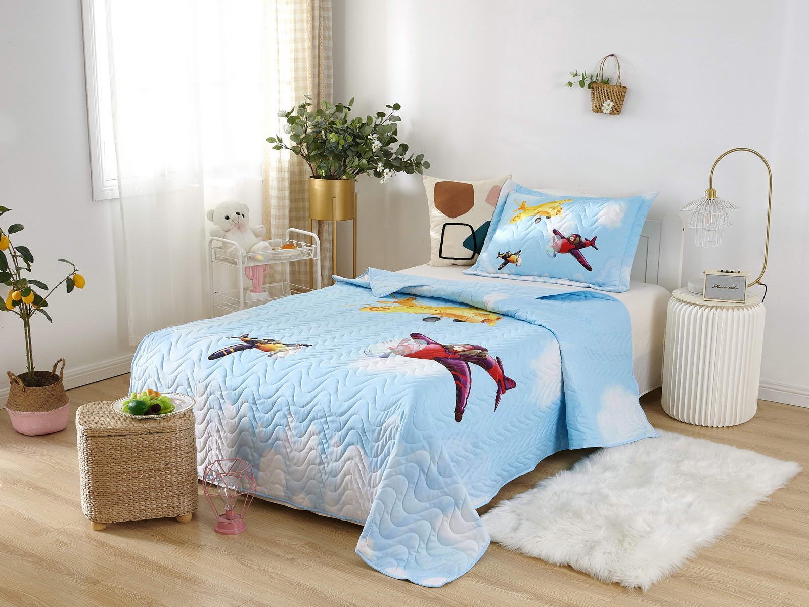 Покрывала «Sunny day» выполнены в 11 разных вариантах дизайна, на выбор, для мальчиков и девочек. Это хороший подарок для любого ребенка, покрывало уже упаковано в красивую подарочную коробку.