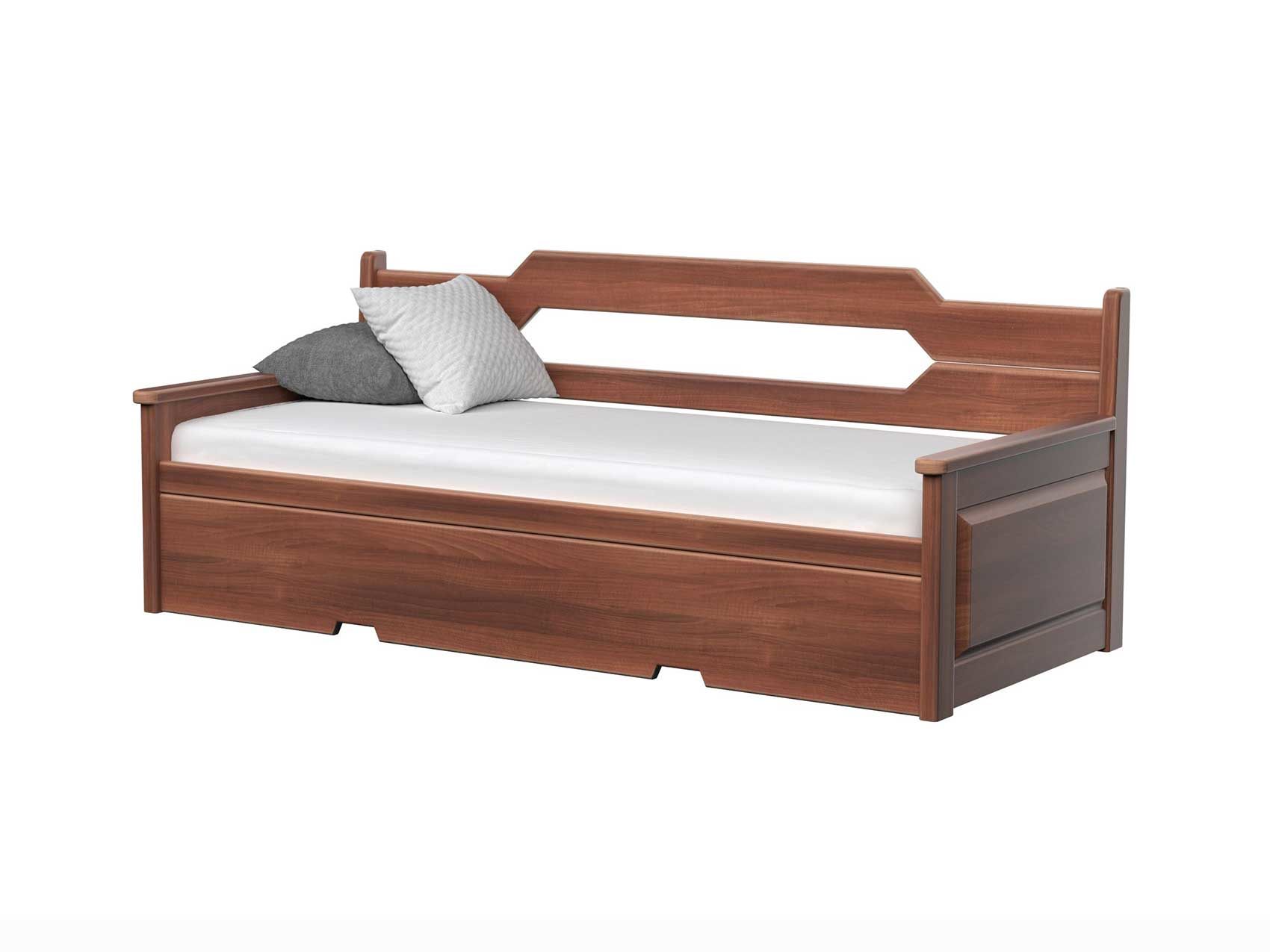 Воплощение практичности и надежности спального места. Модель выполнена из 100% массива благородных пород древесины и легко трансформируется из односпальной кровати в двухспальную кровать с полноценными ортопедическими матрасами высотой до 14 см. каждый. Размер одного спального места (в сложенном состоянии) – 80 см. в ширину и 200 см. в длину, а размер второго (шагающая часть) - 73 см. в ширину и 190 см. в длину. Высота боковых поручней - 58,5 см. Высота задней спинки 87 см. Высота "изножья" с лицевой стороны - 37 см. Внешние габариты: 10 см. к длине и 14 см. к ширине. В разложенном состоянии габариты кровати составляют 160 см. в ширину и 212 см. в длину. Требуется сборка.